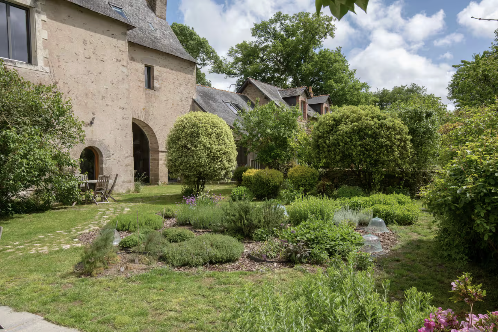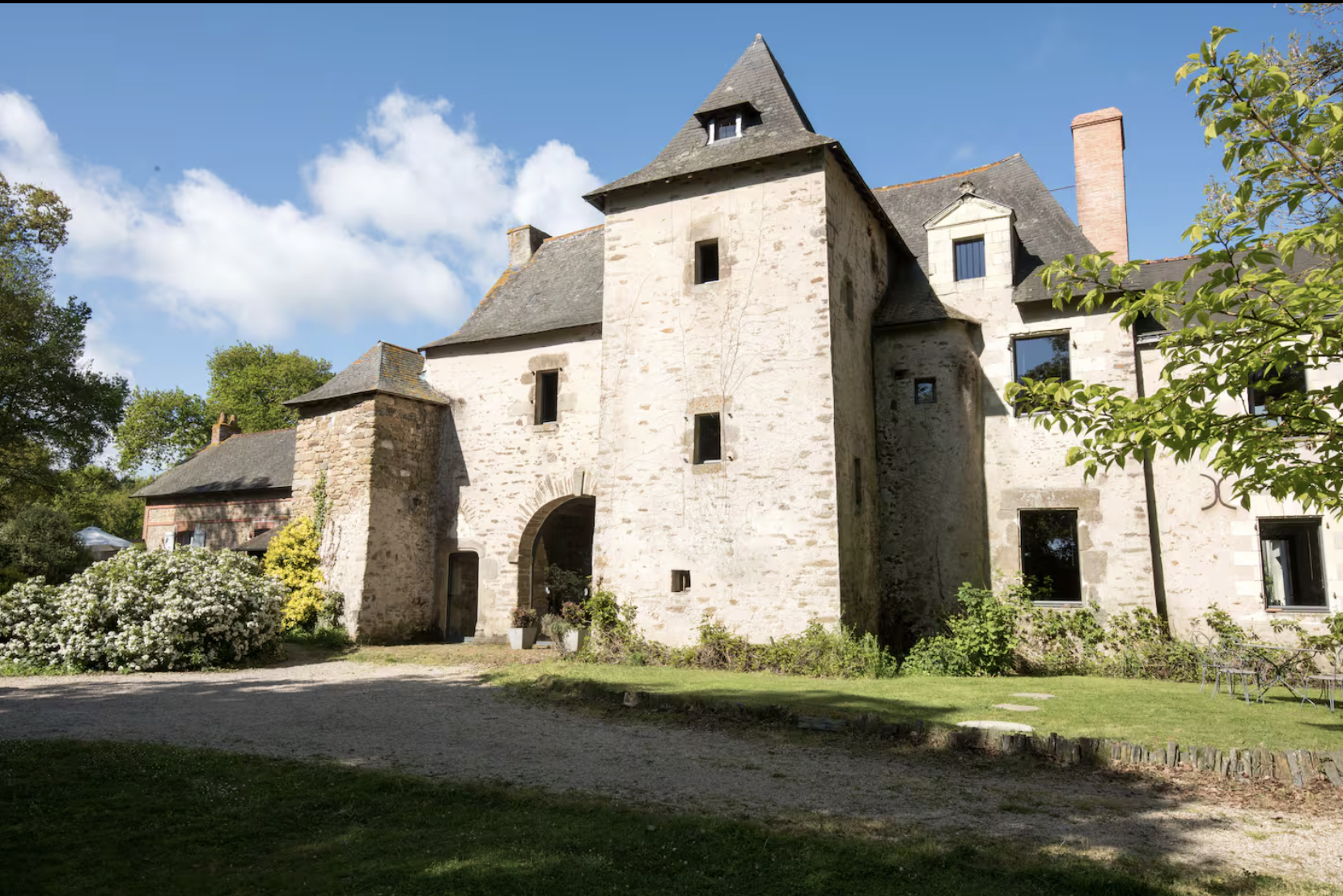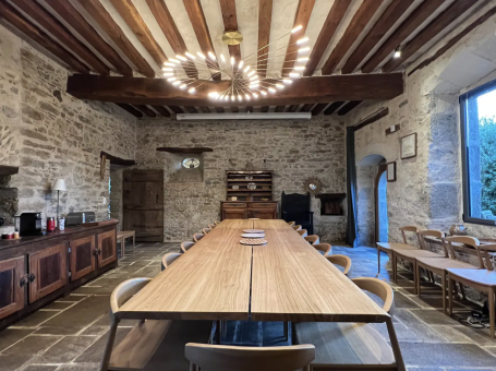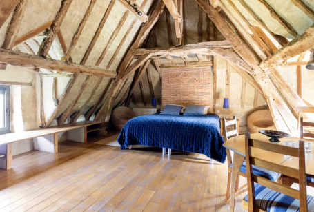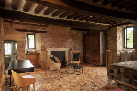 Le manoir, mini château avec ses deux tours, vous plongera dans un autre monde, chaque pièce ayant été restaurée dans les règles de l'art ; torchis, tomettes, poutres, deux grandes cheminées, pierres vues, escalier d'époque en bois dans la tour, énorme porche d'entrée et douves. Toutes les pièces font entre 30 et 40 m². The manor house, a mini castle with its two towers, will immerse you in another world, each room having been restored according to the rules of the art: cob, terracotta tiles, beams, two large fireplaces, exposed stones, period wooden staircase in the tower, enormous entrance porch and moat. All the rooms are between 30 and 40 m²