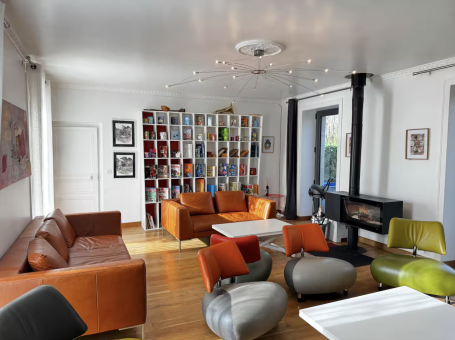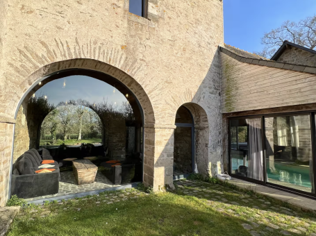 Cette grande demeure est composée d'un ensemble de 3 gites reliés entre eux, avec son beau manoir du XV° au XVII° siècle, son aile XIX°, sa piscine intérieure chauffée (31°) et son cottage. Elle comprend 11 chambres, 9 salles de bain et se niche au coeur d'un parc de 10 hectares. This large residence is made up of a group of 3 interconnected cottages, with its beautiful 15th to 17th century manor house, its 19th century wing, its heated indoor swimming pool (31°) and its cottage. It includes 11 bedrooms, 9 bathrooms and is nestled in the heart of a 10-hectare park.