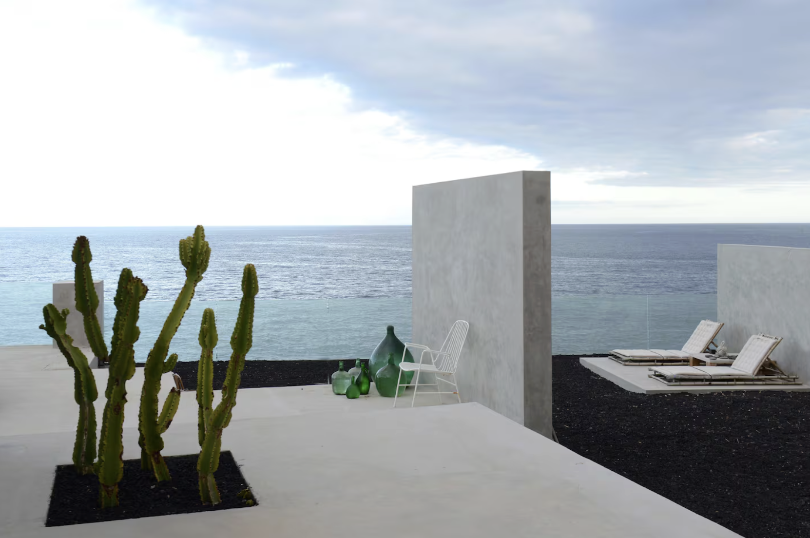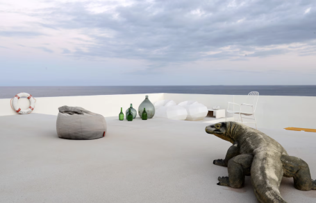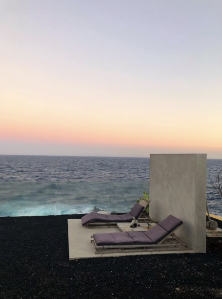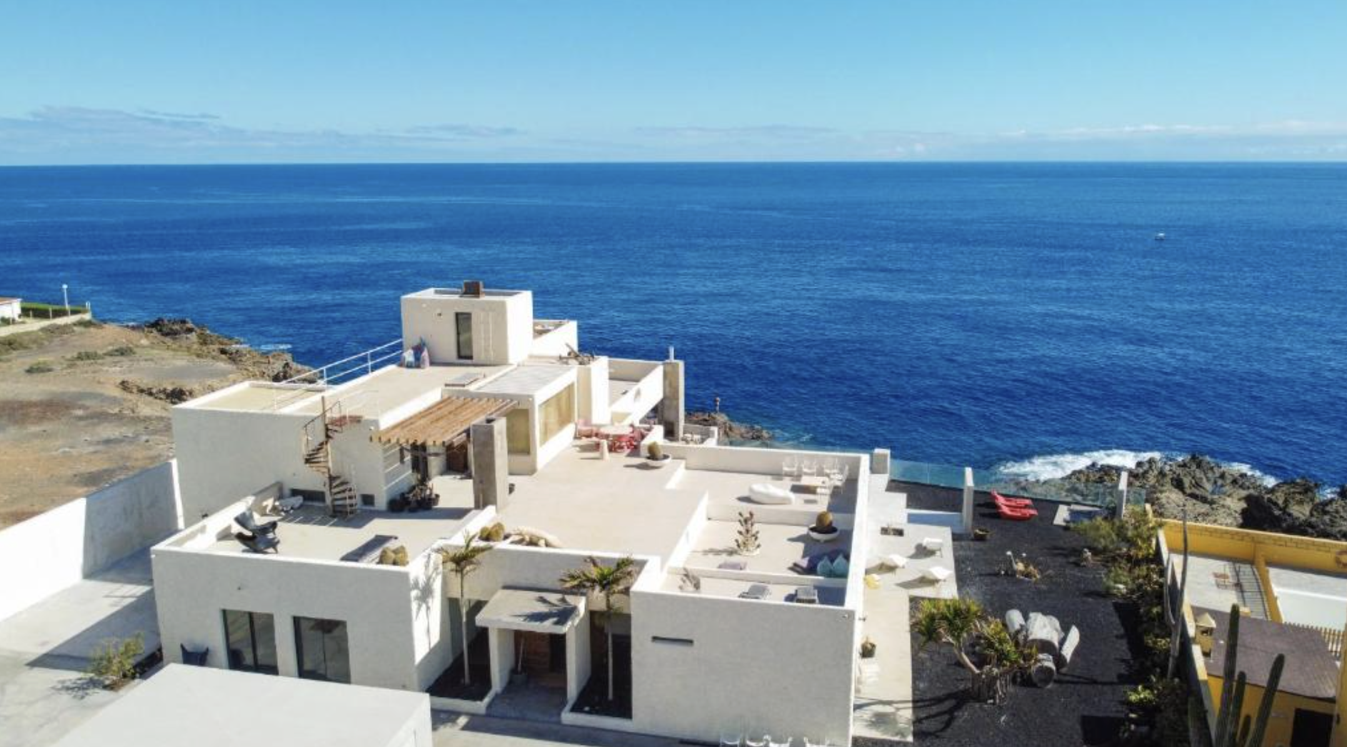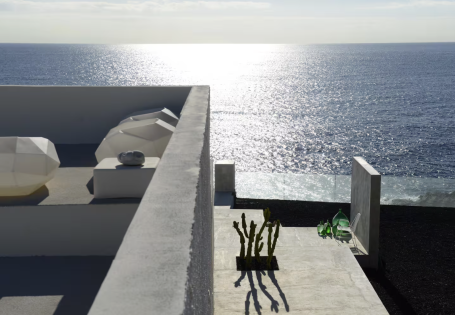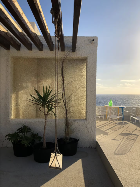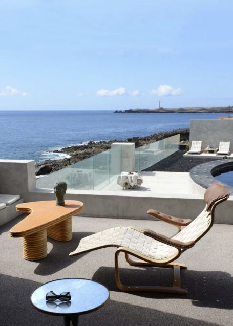 Vous séjournerez dans une villa d'architecte des années 70 construite directement sur la falaise. Elle est remplie d'antiquités, ainsi que de meubles et d'accessoires design, très inspirants pour les photos. Elle comporte plusieurs terrasses et même une piscine naturelle sur l'océan. You'll stay in a 1970s architect-designed villa built directly into the cliff. It's filled with antiques, designer furniture, and accessories, making it a great photo opportunity. It features several terraces and even a natural pool overlooking the ocean.